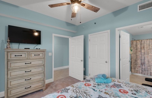 The unit has been beautifully decorated and offers the perfect setting for a beach getaway. You will find this spacious kitchen to flow perfectly with the open and spacious living room. The comfort of the fluffy furniture and the clean design will make you feel at home. The kitchen is very well stocked, it offers anything and everything you may need to cook a three course meal. the bunk area is secluded and has a private bathroom accessible right across. The master suite has the most comfortable bed and perfect shades to guarantee a good night sleep after a long day at the beach. The private master bathroom and extra large closet space complete the perfect ambiance for comfortable stay.