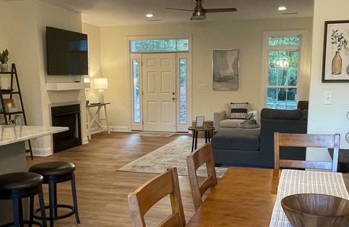 New 1800 square foot 4 Bedroom House in quiet neighborhood located on a 5 acre lot. Lots of privacy and comfort and room to spread out. Superfast internet and a desk with monitors for remote working. 3 TVs so guests can spread out and a large deck with Hot Tub. There is a fireplace for relaxing nights. Every appliance, cookware, dishes and linens are new! You will find this home extremely comfortable and very nicely decorated! We love our guests to be comfortable and happy! We are close to LU, Randolph College and University of Lynchburg. We are 1 mile from grocery stores and close to many restaurants. You won't find a better location!!