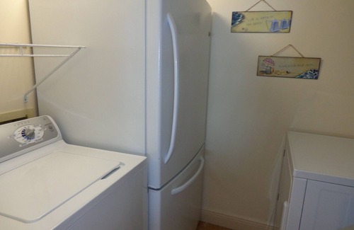 Beautiful granite counter tops in kitchen & both bathrooms. Travertine flooring in kitchen/dining/living room/baths. Extra full size refrigerator located in the laundry room with ice maker. Both bathrooms remodeled with new cabinets/granite counter tops, bathtub/shower combination, rain shower heads with separate handheld, single vanity. 46 inch cable TV in living room with Blu-ray disc player and Yamaha CD Disc Player, 40 inch cable TV in master bedroom with Blu-ray disc player & 26 inch cable TV with Blu-ray disc player in second bedroom, ceiling fans in both bedrooms. Blackout drapes in master bedroom has king size bed and living room has a queen sleeper sofa. Both bedrooms have carpet and very large area rug in living room. Second bedroom has 2 queen sizes beds. Kitchen is fully equipped with all large appliances (2 full size refrigerators, glass top oven, above range microwave, dishwasher, full size washer/dryer) and all small appliances that you will need (blender, toaster, regular 12 cup coffee brewer, Keurig K-Cup brewer, coffee grinder, hand held mixer, etc.) All linens, blankets, towels provided. Bathrooms include hairdryers - no need to pack. Covered parking for this unit.