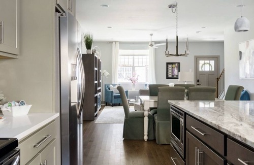 Sample Nashville in this brand new luxury townhome. Nestled in one of the city's trendiest neighborhoods, 12 South/Melrose area, this songwriter's townhome is decorated with the theme of her award winning Faith Hill song "Breathe" as the theme. The walls are adorned with lyrics and awards from her song. This three story home has plenty of space for 10 people and has a new mattresses, fine linens, towels, toiletries, welcome snacks and wine, keurig coffee maker with creamers, and paper goods to get you started. It also has a fully equipped modern kitchen! At Breathe Nashville, visitors are close to all the action. Only 15 minutes from the airport and a 5-10 minute uber ride to all of the action on Lower Broadway. Close to Belmont and Vanderbilt and a short walk to nearby 12 South's amazing reastaurants and shops. like Edly's Bar-B-Que, Mafiaoza's, Taqueria del Sol, Embers Ski Lodge, bartaco 12 South, or Josephine just to name a few. For desert, enjoy an ice cream cone from famous Jeni's Splendid Ice Cream or a melt in your mouth donut from The Five Daughter's Bakery. You can shop at Reese Witherspoon's store, Draper James, or enjoy many other stores and boutiques like Serendipity, Savant Vintage or imogne + willie. If you're looking for laughs, Zanie's comedy night club is only a block away as is nashville's famous Hattie B's hot chicken if you're feeling a little spicy! You can even drop in to the legendary Douglas Corner Cafe if you're wanting to hear some music from local songwriters and artists! STRP #2021076024