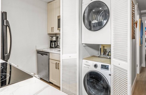 The new AC runs throughout the entire unit and in every bedroom. There are ceiling fans throughout the unit. There is a private washer and dryer inside the unit for your convenience.