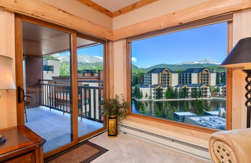 Enjoy the sights and sounds of Breckenridge from the condo's unique 6ft x 6ft picture window and wraparound balcony. The balcony has chairs and a café table with views of Maggie Pond, the Blue River, and the majestic Rocky Mountains.
