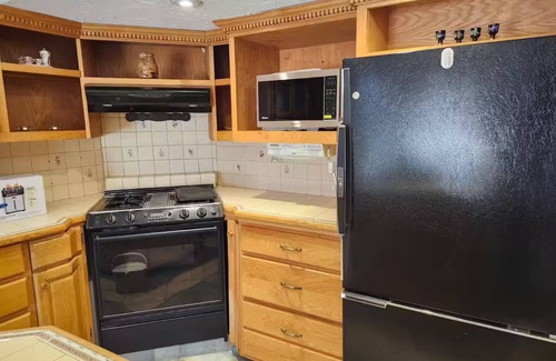 This place has 2 comfort queen beds with great and high quality Mattress in master room, small library, dresser, 55” TV with internet, dining table set with four seats, Drinking soft water, microwave, toaster, electric kettle, dishwasher, washing machine,dryer, one space Free parking.