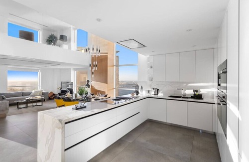 It is fully equipped with stainless-steel cooking appliances that make it suitable for preparing any meal, whether a simple breakfast, quick snack or a three-course gourmet dinner. Spacious quartz countertops and a central kitchen island provide plenty of room to work your MasterChef magic.