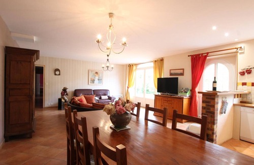Detached house entirely on the ground floor. Living room. Kitchenette. Bedroom 1 (1 queen-size bed). Bedroom 2 (1 double bed). Bedroom 3 (2 single beds). Shower room. Toilet. TV. Wi-Fi. Washing machine. Dishwasher. Bed linen and towels are available for hire. Electric heating at an additional cost. Cleaning service included. Private enclosed grounds. Garden furniture. Barbecue. Wood shed. Enclosed parking with an electric gate. In a country village, a stone's throw from the beaches, the owners have carefully converted a comfortable single-story cottage near their home. We particularly appreciate the spacious living room where the beautiful stone vault, now glazed, lets in natural light.