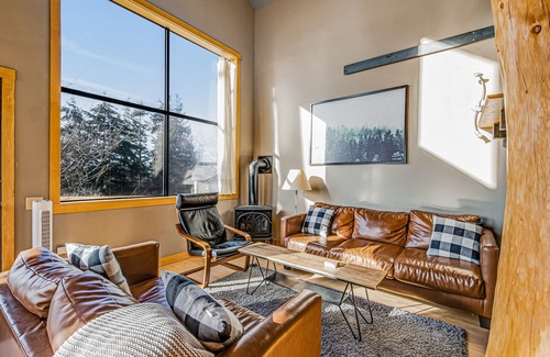 Admire the trees incorporated into the architecture of this Northwest-style home in the Puget Sound! Along with a sleek and modern interior, you will also have two private balconies and an open style floor plan inside. Upstairs, you will find board games for fun family evenings. This airy home is made complete with a library on the second floor and comfortable sitting areas to enjoy a good read. This rental also has a shared outdoor pool.