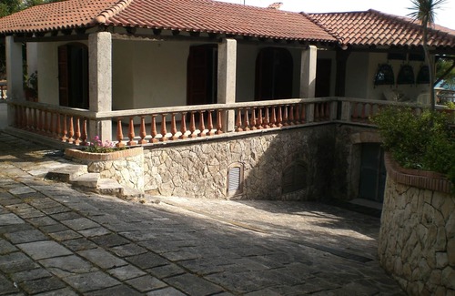 The outside of the villa is characterized by spacious terraces with comfortable outdoor furniture and a pool with hydromassege and heater. A Mediterranean garden located on several floors is the frame of the property and creates relaxing and cool shady areas. A tennis court is usable for sports games. A lower gate allows the access directly to the beach and to the pinewood.
