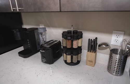 Our unit features everything you need for a comfortable stay, including a fully equipped kitchen, a cozy living room, and two bedrooms with plush beds.