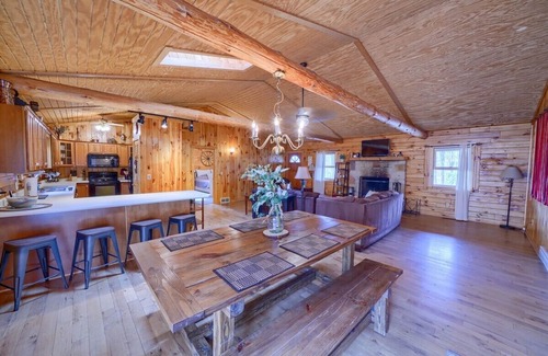 Charming, cozy, delightful, and most important, fun! They’re all part of the experience at this special Hocking Hills vacation cabin with all the comforts of home and the amenities of a luxury hotel. Leave your cares at the door and get to livin’ it up in this 4 bedroom/3 bath, upgraded log cabin situated amid the verdure of Wayne National Forest. Including a lower level bonus room, Buckeye Retreat offers plenty of living space with over 2000 sq. ft more than enough space to accommodate up to 8 guests. Kids’ll love the triple-decker bunk bed! Adults will appreciate the natural wood accents and beautifully exposed wood beams all of which create a rustic, warm, and inviting atmosphere.