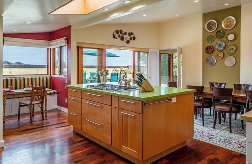 Buena Vista, meaning “good view,” is one of those rare Santa Barbara homes that have both a view of the coastal bluff and Santa Ynez mountains. Located in the exclusive More Mesa Shores community, Paradise Retreats exclusively brings you this large ranch home is ideal for nature lovers. The back deck opens up to More Mesa Open Space, a grassland habitat for lots of cute critters that also includes miles of hiking trails. It’s not uncommon to see bobcats, coyotes, mountain bikers, and locals on horseback all in one day. Situated in between Goleta and Santa Barbara, everything is a short distance away.