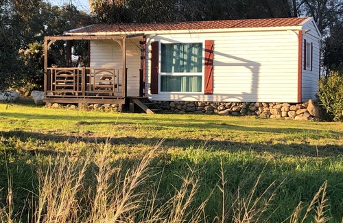 The bungalow is located in the heart of the natural park, surrounded by cork oaks, olive trees, myrtles, arbutus ... it is on a private ground.