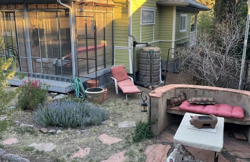 Historic bungalow at the top of 33 stairs on quiet street, five minute walk to main street. Explore the funky and art filled town of Old Bisbee endlessly on foot from the front porch! House includes fully equipped kitchen, screened in back porch, darling back yard, easy street parking, Wifi, washer, dryer and a beautiful cross breeze!