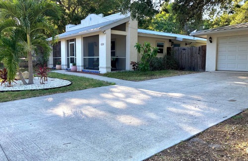 A 3 bed/2 bath home 5 miles to award-winning beaches and minutes to airport, downtown, shopping, restaurants, and activities. No need for a car, one can bike everywhere from here. Museums, golf, boating, sunbathing, swimming, all with a urban/tropical vibe. Relax and unwind or paint the town, we have it all! Enjoy private access to the entire house, pool area, and backyard during your stay. Owners live on-property in the adjacent unit. We welcome you to enjoy our little slice of paradise in sunny Sarasota!