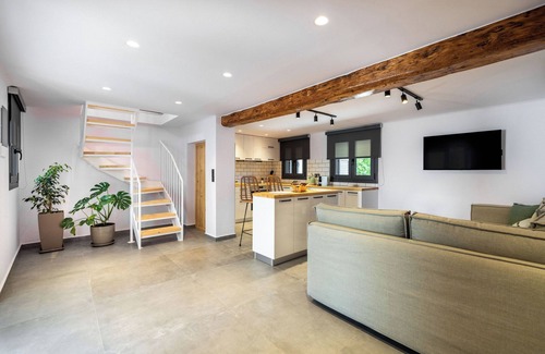 Welcome to Buonora D'Oro Villa, a beautifully renovated traditional house blending modern comforts with timeless charm. Spanning 115 sqm, this exquisite retreat features an open-plan kitchen and living area with a 43' smart TV and A/C unit, along with a full bathroom on the ground floor. Upstairs, you'll find two cozy bedrooms with double beds with 32' smart TV and A/C unit and an additional full bathroom. The outdoor area has a 15sqm swimming pool, a barbecue and parking for up to two cars.