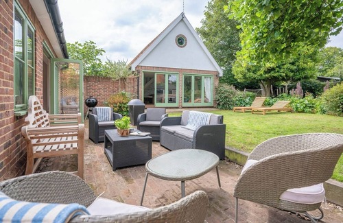 A stunning, traditional cottage with off-road parking and a large fully enclosed garden, located in the heart of the picturesque fishing village of Orford. Interiors are spacious and retain period features in the living room and four bedrooms (super king, double, single, and single/twin) with a wonderful modern kitchen/dining room - ideal for indoor/outdoor living. The light and airy annexe with the fifth bedroom has a king size bed and en-suite shower room upstairs, and a fun games/TV room downstairs.