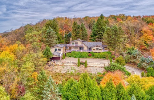 This beautiful 21 room mountain home located in the Laurel Mountains. No other home can compare to the 180 degree view. Sits at almost 3000 feet -same height as 7-Springs highest peak--fantastic view of the back side of the mountain.