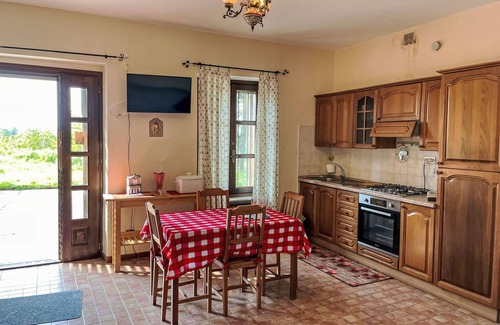 "Tulipano", 2-room apartment 70 m2, on the ground floor. Practical and rustic furnishings: living/sleeping room with 1 double sofabed (140 cm), TV. Exit to the garden. 1 double bedroom. Kitchenette (oven, Gas stove, 4 gas rings, toaster, kettle, electric coffee machine). Exit to the garden. Bath/WC. Heating available only from 01.10. to 30.04. Natural stone floors. Small terrace 15 m2, large patio. Beautiful panoramic view of the countryside. Facilities: children's high chair, baby cot for up to 2 year olds. Internet (WiFi, free). Please note: maximum 1 pet/ dog allowed. Smoke alarm, fire extinguisher. IT005005B56JM69RP4