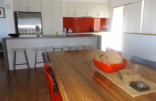 The huge master bedroom has en-suite with spa and breathtaking ocean and river views as you enjoy breakfast or a cuppa in bed watching the dolphins swim past. The other upstairs bedroom is big with own en-suite, this has a queen bed and single trundle bed which is perfect for the family.
