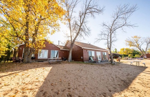 This popular cabin is a three-bedroom unit with a patio area that transitions right onto our sand beach! You’ll be only feet away from the water’s edge and the lapping waves. This unit is set back a little from adjoining cabin 3, which makes the patio area very private. Enjoy the breezes off the lake and sit in the shade.