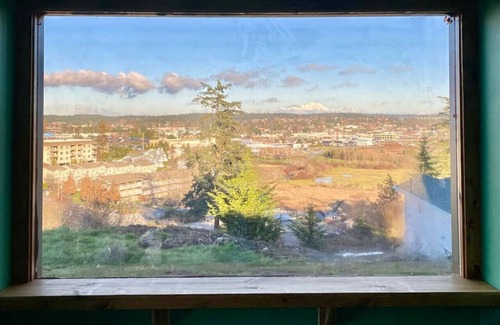 Come to Whidbey Island and relax in this completely remodeled 'Cabin' with an extraordinary view of the harbor, city and mountains! Close enough to town to enjoy all the conveniences of shopping, restaurants, etc. but feels isolated to enjoy the peace and quiet for your island getaway! Get ready to relax in the hot tub and then enjoy a nice fire in the fire pit on the patio!