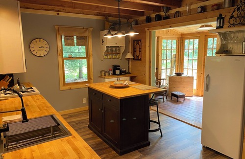 Welcome to this enchanting cabin in central Wisconsin, nestled amidst serene woods, offering a warm and cozy escape. Inside, you'll find a charming interior with wood stove, cathedral ceilings adorned with knotty pine, creating a spacious and inviting atmosphere. The large country kitchen with a charming island and coffee station adds to the cabin's allure. Modern comforts like high-speed internet, air conditioning, and smart TV with streaming services blend seamlessly with the cabin's rustic charm.