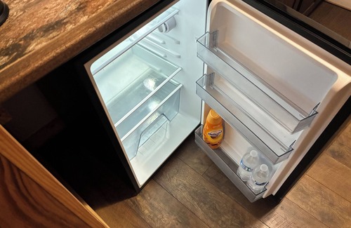This 1 bed/1 bath features a kitchenette and shower/tub combo. Wifi and Roku included. The suite is attached to the main home by a patio roof but does not share an entrance or heating/AC with the main home (about 25 ft between them).