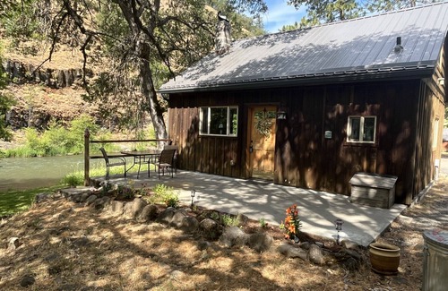 Relax on the patio as you enjoy the river flowing by and the view of the majestic canyon wall. You'll love the warmth of the beautiful cabin which is finished in three varieties of wood including a Douglas Fir beamed ceiling. You will love the view of the river, especially from the cozy loft. Bring your bikes and hiking shoes for use on the old abandoned road up the hill across from the cabin. There is also a three bedroom house on this property that sleeps 8 guests. See VRBO #403515.