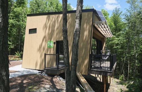 This cabin, on the backside of Mont-Orford Park, is situated on the immense 1000-acre Vertendre forest playground. This protected, private territory offers 2 lakes and a mountain where you can enjoy a wide range of outdoor activities right on the site. A perfect balance between ecology, innovation, and comfort.