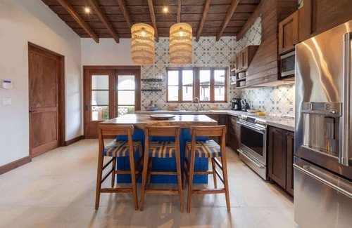 This vacation home is just steps away from the Beach Club which features pools, a hot tub, a gym, a restaurant, and the social center of the town, where for an extra fee of $15 you can enjoy all these amenities. During the days, you will likely be busy at one of the beach barbecues on Playa Danta, off on a catamaran cruise with Connect Ocean, or sipping a sunset gin & tonic at the Santarena Hotel.