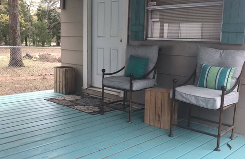This is a nice country cabin with 2 bedroom, 1 bath, a carport, and a fenced yard. It is located on 2 lots about one block from the waters of beautiful Callendar Lake. Our guest are welcome to go over to the lake and enjoy the fishing docks, swimming area, and boat ramp.