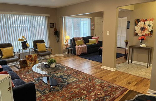 “If Music is a Place — then Jazz is the City, Folk is the Wilderness, Rock is the Road, Classical is a Temple.”Vera Nazarin Creating our home to express homage to the art of music was so exciting. Our spirits filled with joy as we purchased every decorative piece. To know we have something in common with most human beings as we designed our 3 bedroom/ 1.5 baths ranch style home made our space have so much meaning. The thought of hip hop, country, rap, pop, folk, opera, gospel and so much more filling the air really made us think our guests will love this place and want to book a stay!