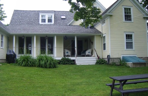 The house is light and spacious, simply furnished with an eclectic mix of comfortable antiques and contemporary furnishings. There is plenty of space to gather together or have some privacy. Very well suited to multigenerational groups. Securely fenced back yard for your dog . Large airy living room with 2 french doors opening to a back porch ideal for reading or conversation. Gas fireplace for chilly evenings. Outdoor covered porch seating and picnic table in the yard. Open flow from kitchen to dining room, separate family room/library. Downstairs bedroom with bath. Upstairs primary bedroom with en suite bath; soak in the claw foot tub with a view of Mt. Battie. 2 Additional bedrooms, another full bath and a laundry room also upstairs.