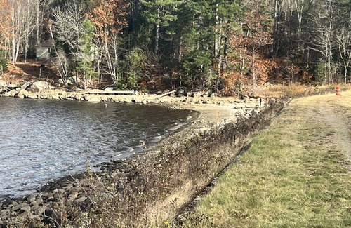 One lot of land for one RV, park to the left of the shed. No hookups on the lot. Walk across the street to Goose Pond and beach area. Or drive a short way to the public boat dock. Plenty of hiking, biking, walking trails. Great small town with excellent food and views.
