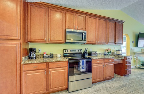 Sunshine and serenity await at this Jacksonville vacation rental! Nestled on a quiet canal near nature preserves, golf courses, and sandy shores, this 4-bedroom, 3-bath home makes enjoying the beauty of Florida's First Coast easy. Launch kayaks or fish from the on-site dock, then unwind on the patio. Want to venture out? Make a splash at Adventure Landing or watch live music at Seawall Pavilion. A memorable stay starts here!