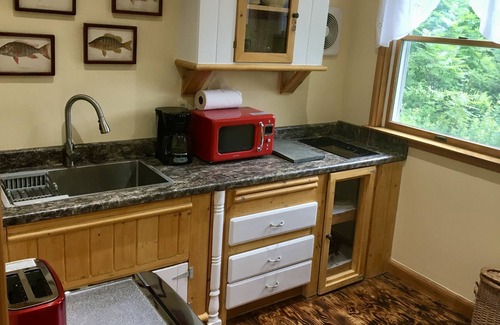 We know at this special time how important it is to be safe and secure. And so tucked away into eight wooded acres and just a short walk from Highway 1 is the Canoe House Bungalow. Private, secure and unique. The Canoe House Bungalow offers a great getaway for nature lovers while being accessible to nearby towns of Searsport, Belfast and Bucksport. We live on the property in an adjacent house and are available for your needs, but always respect your privacy.