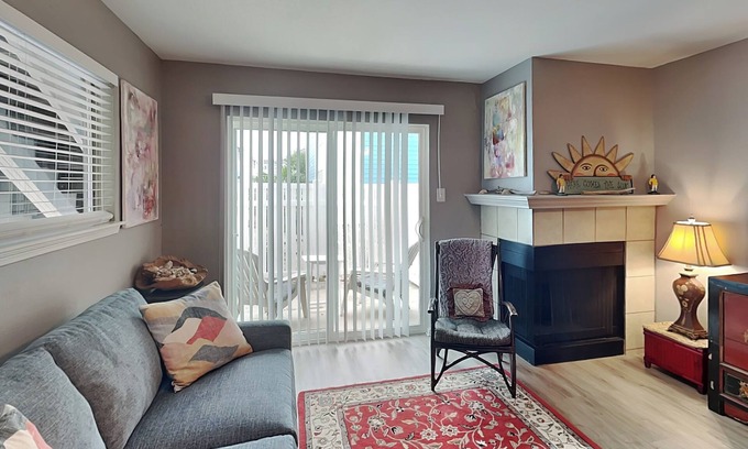 Inside, you'll find a welcoming living room with a cozy sleeper sofa, large TV, and a fireplace to keep things warm and inviting on cooler evenings. The fully equipped kitchen includes everything you need to cook up delicious meals, with a breakfast bar for casual dining.
