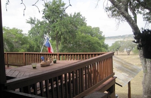 You will feel right at home in this hilltop property with lake views. Large covered decks are perfect for enjoying the hill country view and feeding the deer (Deer corn provided).There is also a large outdoor table that can seat up to 12 people on the giant deck. Two master bedrooms and 2 living areas make this home ideal for multiple families. There is a king, two queens, two sets of bunk beds, and a futon(for kids) provided. We love to cook when we are there so this unusually well equipped kitchen has everything you would need, even spices! Two living areas allow for both quiet conversation and T.V watching.
