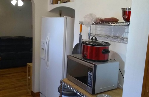 Great place for Frontier Days! 3 bedrooms plus queen sofa sleeper for comfortable overnight stay for up to 8 people. Lots of extra pillows and blankets for comfort. Traditional entry welcomes you into a central living room with hardwood floors and a blend of old fashioned craftsmanship and modern convenience. Three well-appointed bedrooms have fresh sheets, comforters and quilts. The fully refurbished bath has traditional black and white tile and is stocked with fresh towels and toiletries. A kitchen filled with dishes and cookware and appliances, so you brew coffee, bake a cake or make dinner. Garage. Yard. Laundry. Make yourself at home.