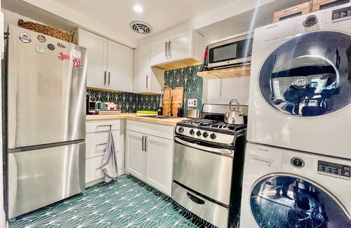 Stay in a charming, renovated 1900s carriage house 4 blocks from Eastern Market metro in D.C. Enjoy local history with modern comforts in this 1-bedroom home featuring a cozy living room with books, games, a projector, and a convertible couch. A fully equipped kitchen and convenient laundry facilities cater to all your needs. Upstairs, a sunlit bedroom w/ queen bed, large TV, bathroom, desk, and closet awaits. Step outside to a private patio or explore nearby dining, shops, and attractions.