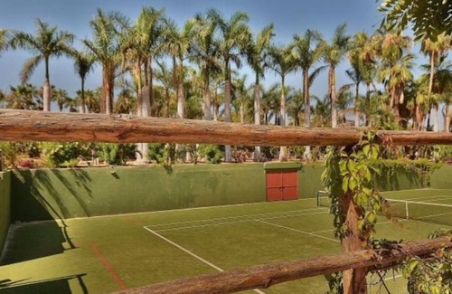 The ranch has a peaceful and fun and friendly open policy for guests to be able to use the swimming pool, tennis court and walk through the trees just exploring. The casitas are all about 50 yards apart. The ranch and the casitas have never been about the money. The ranch is about people who want to experience something special. After all, it's a working mango ranch! Why rent a house when you can rent a casita and be a part of a mango ranch. In the early mornings, there are hundreds of doves calling you. It's amazing! Evenings can be spent with our chimineas lit with crackling wood. The tennis court is grass and easy on the knees. The humane society dogs have all been healed by the serene energy of the ranch and they will walk you around and tell you their stories. The beach is literally a couple hundred yards - just the perfect distance. Believe me, you don't want to live right on the Pacific Ocean. The Pacific Ocean can talk. When you're living right on the beach in Baja it's very barren from salt and cold breezes in the late afternoon. It's a fun 200 yard walk to the beach down our driveway and then a small dirt road, Coming back to the warm ranch always feels good.