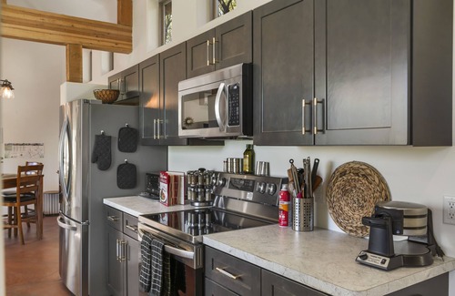 Full Martha Stewart Kitchen. Kerig Coffee Maker, Blender, Griddle, Crock-pot and most everything you will need for rustling up a gourmet meal.