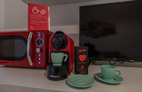The apartment has an entrance leading to the living area, designed with a modern and functional layout. The fully equipped kitchen includes a refrigerator, coffee machine, microwave, and dining table, ensuring maximum comfort. The living room, furnished with a double sofa bed and a flat-screen TV, offers a cozy and relaxing atmosphere. You can access a private balcony from the living area, perfect for enjoying moments of outdoor relaxation. The sleeping area comprises a tastefully decorated double bedroom with a spacious wardrobe to meet all your storage needs. Additionally, there is a convenient storage room to keep the space organized. The bathroom is designed for both functionality and comfort, equipped with a large shower and a washing machine for guests’ use.