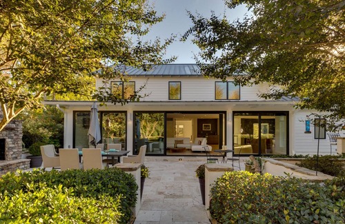 Welcome to Casa Buena Vista! Here are some interesting facts about the home. The house was originally built in 1968 as a custom colonial. In 2019 it was completely gutted exposing the wood frame structure. A new clean design was then realized using steel to create wide open spaces and linearity. Sliding doors by La Cantina allow the outdoors to be enjoyed from within the home bringing in nature and light.