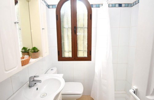 Casa Caleta, holiday home set out on 1 floor, for 4 people, (174m2), has internet and 2 bedrooms with air-conditioning. Casa Caleta is located in the urbanization Toscal in Jávea. There is a living room with sofa, fireplace, bar with 2 chairs, fan and access to the covered terrace with table, 6 chairs and a view of the Montgó in the distance. Fully equipped kitchen with dishwasher, large fridge freezer and dining area. Both bedrooms have air-conditioning. There are 2 bathrooms, Private swimming pool of 4x4m surrounded by terrace with 4 sunbeds. Next to the kitchen is a terrace with garden furniture, parasol and barbecue. Front garden with lawn. Fenced plot of 770m2 with covered parking. Restaurant in the surrounding area. Distance to the beach Cala Blanca is only 650m, to the beach Arenal 2,5km. Pets are not allowed.