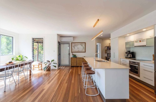 Wooloweyah is ideally located nestled beneath the village of Angourie and it's world class surf breaks. It's also a mere 5 minute drive from the restaurants, boutiques, golf club and icons of Yamba.