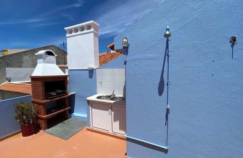A charming house located in Praia da Areia Branca, perfect for up to 7 guests. It features 3 bedrooms, 2 bathrooms, a fully equipped kitchen, a bright living room, and a rooftop terrace with stunning sea views, ideal for relaxing.