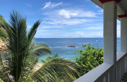 Casa El Delfin is a 3-level house only steps away from one of the most beautiful & peaceful beaches on the Pacific coast in Oaxaca, Mexico. It's located on the bay of Estacahuite just 5 minutes away from Puerto Angel (a small fishing village) & 30 minutes from Huatulco Airport. The ocean view from the house is unforgettable. You will be able to view the beautiful sunrise and sunsets everyday of your stay. You will have full access to 3 beaches to snorkel, swim, scuba dive, or just enjoy the sounds and smell of the ocean air. There's some of the most beautiful coral reefs and fish in this area. There are several open-air restaurants/bars on the beach close to the house and small grocery stores in the neighborhood for your convenience. This is truly paradise.