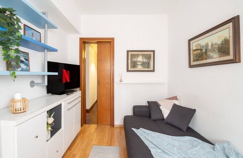 The apartment is bright, cozy, and fully equipped with all the comforts: 🛏️ Bedroom : One double bed + one bunk bed (also suitable for adults). 🛋️ Living area : Modern, fully equipped kitchen, dedicated workspace, and a lounge with a comfortable sofa bed (106 cm, perfect for two children or two slim adults). 🛁 Full bathroom with a shower for total relaxation. 🌿 Balcony with a view of the green courtyard , ideal for enjoying your morning coffee.