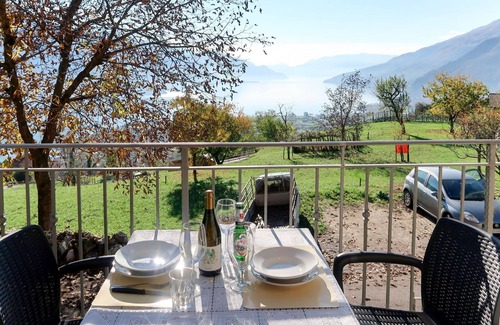 3-room apartment 60 m2 on 2 levels on 1st floor, south facing position. Bright, practical furnishings: living/dining room with dining table and satellite TV. Open kitchen (oven, dishwasher, toaster, kettle, freezer, electric coffee machine). Exit to the balcony. Sep. WC. On the lower ground floor: 1 double bedroom. Exit to the garden. 1 room with 2 beds. Exit to the garden. Shower/WC. Gas heating. Balcony, patio. Balcony furniture, deck chairs (2). Panoramic view of the lake and the mountains. Facilities: children's high chair, baby cot. Internet (WiFi, free). Please note: maximum 1 pet/ dog allowed. Private entrance. IT013249C2G8F3IXCA