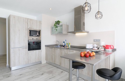 Casa Mercedes Apartment 3 is a modern and cosy holiday accommodation located in the heart of the Old Varadero Puerto Viejo "Old Town" in Puerto del Carmen, Lanzarote. Its privileged location offers stunning sea and horizon views, with the port just a few steps away and beaches like Playa Grande within walking distance. Additionally, it is surrounded by a wide variety of leisure options, making it the perfect place to enjoy a holiday by the sea.The apartment has a bedroom with two single beds joined as a double bed (with the possibility of separating them upon request at least 48 hours in advance) and a sofa bed in the living room. The base published price is for 1 or 2 people. In the event of accommodating a third person, an additional supplement per night will be applied, always reflected before confirming the reservation in the price and dates search.The bathroom includes a shower, hairdryer, magnifying mirror and quality toiletries (gel dispenser, shampoo and moisturising cream). The living room is spacious and features a TV with European and English channels, Wi-Fi, dining area and fully equipped kitchen.The property features a furnished terrace with a table, chairs, and sun loungers, perfect for relaxing and enjoying views of the sea and the harbour.Other notable services:Air conditioning in the payment lounge (operates with euro coins).Private parking in garage, available with additional daily cost and subject to availability.Digital check-in online: before arrival, we will ask you to complete the online registration. Access to the accommodation is done via a digital key from the same online check-in app.Welcome pack with water, milk, coffee, tea, biscuits and more.Bath towels, beach towels, sheets and blankets included. Check-in: from 3:00 PM Check-out: until 11:00 AM Car Hire: We recommend booking in advance due to high demand in Lanzarote. We collaborate with a trusted local company that offers special conditions. If you wish, we can manage it for you by simply providing us with your flight details.